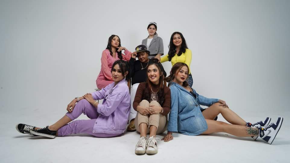 Kiki Rizkya, 2 Hati (Mayang dan Anya), Mas Bruno, Kaffah, Naufa Mirza, dan Elizabeth, para artis Nada Jwara bersama Tim Jwara Creative. (Dok. Jwara Creative)