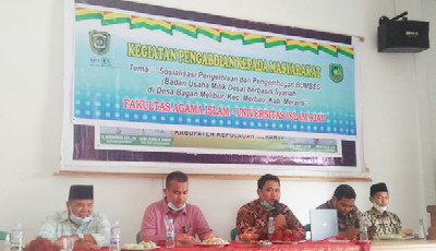 Meranti, Satuju.com - Dosen Prodi Perbankan Syariah UIR melaksanakan Pengabdian Kepada Masyarakat dengan Sosialisasi Pengelolaan Dan Pengembangan Badan Usaha Milik Desa (Bumdes) Berbasis Syariah di Desa Bagan Melibur Kecamatan Merbau Kabupaten Meranti.