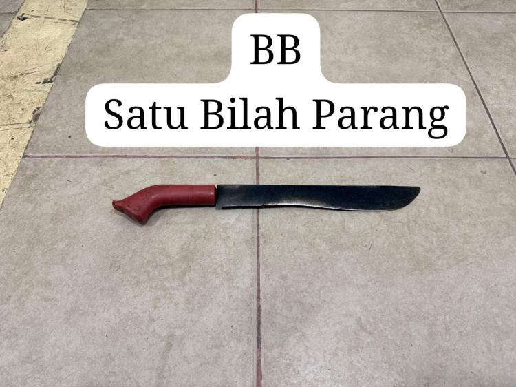 Polisi turut mengamankan sejumlah barang bukti, di antaranya sebilah parang bergagang merah sepanjang 44 cm, hoodie hitam, celana jeans abu-abu, serta satu set pakaian olahraga.