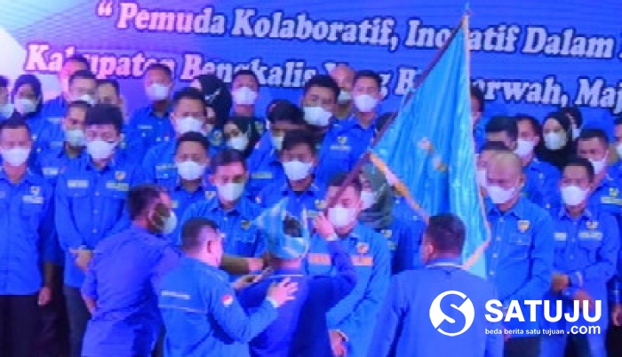 BENGKALIS, Satuju.com – Ditandai dengan pembacaan ikrar atau janji pemuda serta penyerahan bendera pataka. Ketua DPD Komite Nasional Pemuda Indonesia (KNPI) Riau Fuad Santoso, S.H, M.H melantik pengurus DPD KNPI Kabupaten Bengkalis masa bakti 2021-2024, Selasa (11/1/2022).