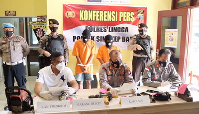Kegiatan Konfrensi Pers tersebut dihadiri Kasihumas Polres Lingga AKP Hasbi Lubis, Kapolsek Singkep Barat AKP Bakri, S.IP Kanit Reskrim Polsek Singkep Barat IPDA Andi Krisnawan, S.Pd, M.H, Personil Polsek Singkep Barat dan Awak media serta tersangka US als BO (36) dan tersangka AD (34).