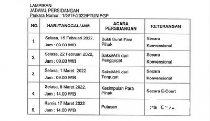 Poto : Jadwal Sidang Gugatan Perdata PT Pulomas Melawan Gubernur Babel.