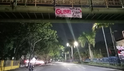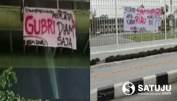 Teks poto : Aksi ini berupa pemasangan spanduk di Kantor gubernur Riau, Flyover Mall SKA, Flyover Nangka-Sudirman, JPO Tabek Gadang dan JPO dekat Kantor DPRD Provinsi Riau.