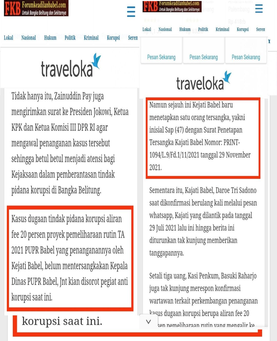 Dikatakannya, dalam pemberitaan di salah satu media online Babel (ForumKeadilanBabel.com) kerapkali menjadi dirinya menjadi objektif pemberitaan yang tidak berimbang dan sesuai fakta, bahkan penulis terkesan memaksa bahwa dirinya harus digiring menjadi seorang tersangka dalam perkara aliran dana fee 20%.