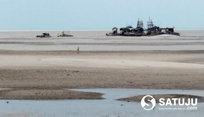 Teks poto : puluhan ponton tambang rajuk ilegal yang beroperasi di wilayah laut Samfur dan Batu Belubang.