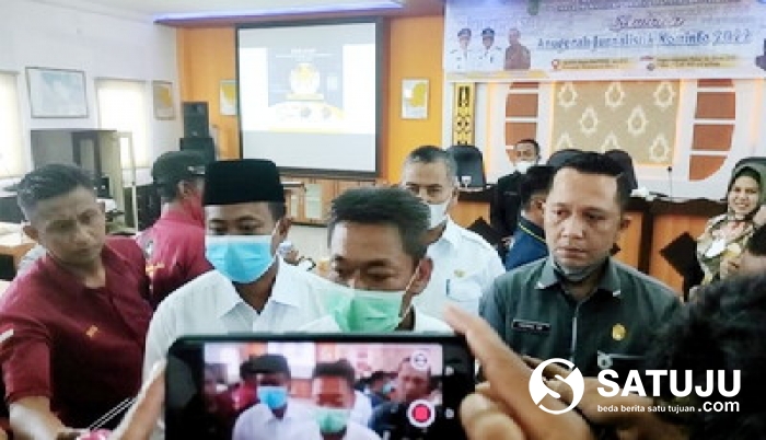 Teks poto : Bupati Rohil Afrizal Sintong saat diwawancarai setelah membuka Seminar Anugerah Jurnalistik Kominfo Tahun 2022 di Aula Bappeda Rohil.