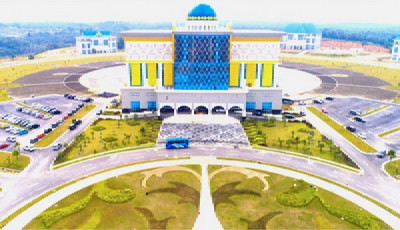 Teks poto : Salah satu tanda kota madani/city sign Pekanbaru Kota Madani menyapa siapa saja saat keluar dari bandara Sultan Syarif Kasim II dan masuk ke Jalan Sudirman Pekanbaru menuju pusat Kota Pekanbaru yang merencanakan pembangunan berbasis superblock. Pekanbaru segera menjelma menjadi Kota Megapolitan. (ist).