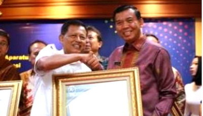 Ket. Poto : Wali Kota Pekanbaru DR Firdaus ST MT menerima Penghargaan Pelayanan Publik Terbaik 2014.