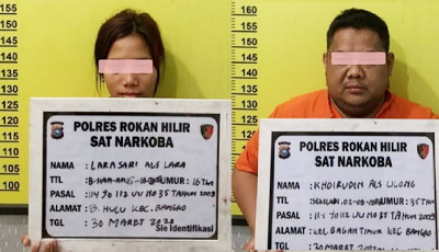 Rokan Hilir, Satuju.com - Naas betul nasib KH alias udin (35) dan LS (16) keduanya terpaksa harus digelandang ke mapolres Rokan Hilir, pasalnya kedua orang tersebut kedapatan memiliki narkotika, keduanya terjaring tim Satresnarkoba polres Rohil di salah satu tempat hiburan Karaoke di Bagansiapiapi, Rabu malam 30 Maret 2022 sekira pukul 22.00 Wib.