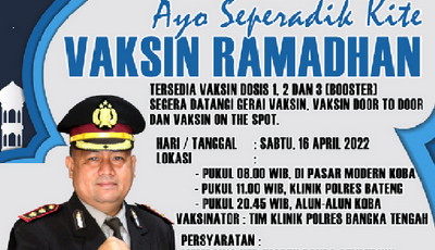 Baik vaksin 1, 2 dan 3 (Booster), vaksin door to door maupun vaksin on the spot, salah satunya bertempat di Pasar Modern Koba, Sabtu (16/04/2022) besok. (KBO Babel)