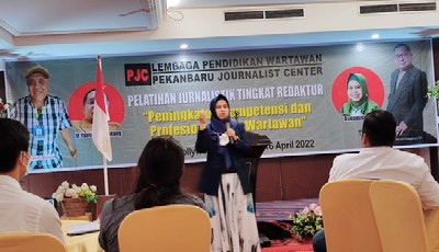 Pekanbaru, Satuju.com - Pekanbaru Journalist Center (PJC) menggelar pelatihan jurnalis tingkat redaktur. di Hotel New Hollywood Pekanbaru, Sabtu (16/4/2022).