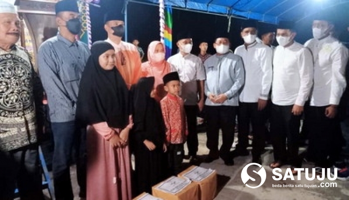 Pembagian puluhan paket sembako dilaksanakan secara simbolis disela-sela pembukaan festival lampu colok yang dipusatkan di Desa Damai, Kecamatan Bengkalis, Kabupaten Bengkalis. Kamis malam (28/04/2022)