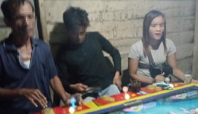 Teks poto : Saat Oknum BPD berhasil di jepret Wartawan saat asik bermain judi jenis tembak ikan-ikan.