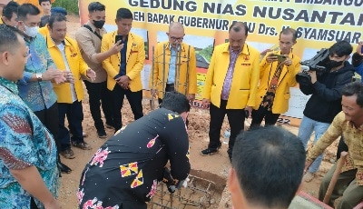 Pembangunan Gedung Nias Nusantara yang diperkirakan akan menelan dana kurang lebih 14 Miliar rupiah tersebut, peletakan batu pertama langsung oleh Gubernur Riau yang diwakili Kaban Kesbangpol Provinsi Riau, Jonri Salmon Ginting, A.P,, M.Si.