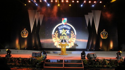 Proses penyerahan apresiasi bagi wajib pajak teladan ini berlangsung di SKA Co Ex, Kota Pekanbaru. Satu persatu penerima penghargaan menerima piala dan piagam di panggung utama.