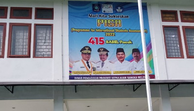 Spanduk yang bertuliskan "Mari kita sukseskan PISA (Programme For Internasional Students Assessment) 2022, 415 Babel Pacak" terpajang tepat di atas depan Gedung Dinas Provinsi Kepulauan Bangka Belitung".