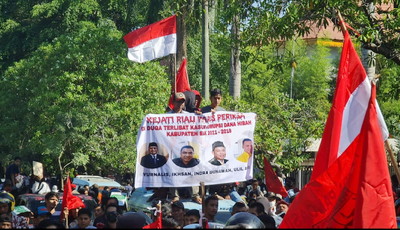 PEKANBARU, Satuju.com - Ribuan massa Pemuda Pancasila (PP) dan elemen mahasiswa kembali menggelar demonstrasi menuntut penuntasan kasus dugaan korupsi dana hibah Kabupaten Siak tahun 2011-2019.