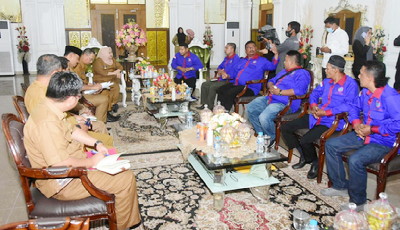 Ketua FSPTI-SPSI Khusus Kabupaten Bengkalis Andika bersama pengurus menyampaikan tujuan bertemu langsung dengan Bupati Bengkalis untuk meningkatkan tali silaturrahmi dan meningkat sinergi dengan Pemkab Bengkalis.