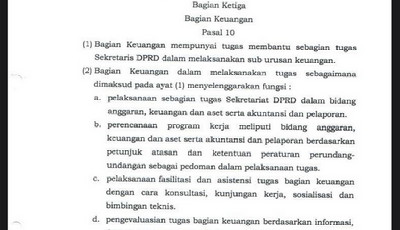 Pasalnya, ditemukan sejumlah pembiayaan program/kegiatan/sub bagian yang ditangani oleh Kepala Bagian Keuangan diduga tidak sesuai tupoksi sebagaimana diatur dalam Peraturan Walikota Pekanbaru Nomor 90 Tahun 2016 Tentang Kedudukan, Susunan Organisasi, Tugas dan Fungsi Serta Tata Kerja Sekretariat DPRD Kota Pekanbaru.