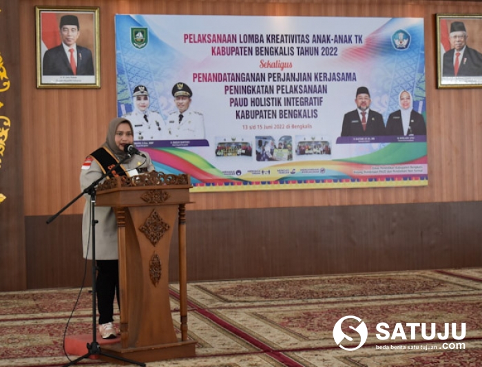 BENGKALIS, Satuju.com - Bupati Bengkalis Kasmarni membuka secara resmi kegiatan Lomba Kreativitas Anak-anak TK Kabupaten Bengkalis, di Balai Kerapatan Wisma Daerah, Selasa, 14 Juni 2022.