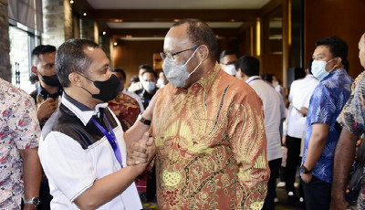Wabup Bagus Santoso kala berbincang bersama Wakil Menteri Dalam Negeri John Wempi Watipo Melalui Rakernas tersebut Wabup Bagus Santoso mendukung langkah pemerintah pusat sebagaimana yang dipesankan Menteri Dalam Negeri M. Tito Karnavian yang meminta seluruh pemerintah daerah mengalokasikan 40 persen dari anggaran pendapatan dan belanja daerah atau APBD untuk belanja produk atau jasa dari pelaku UMKM.