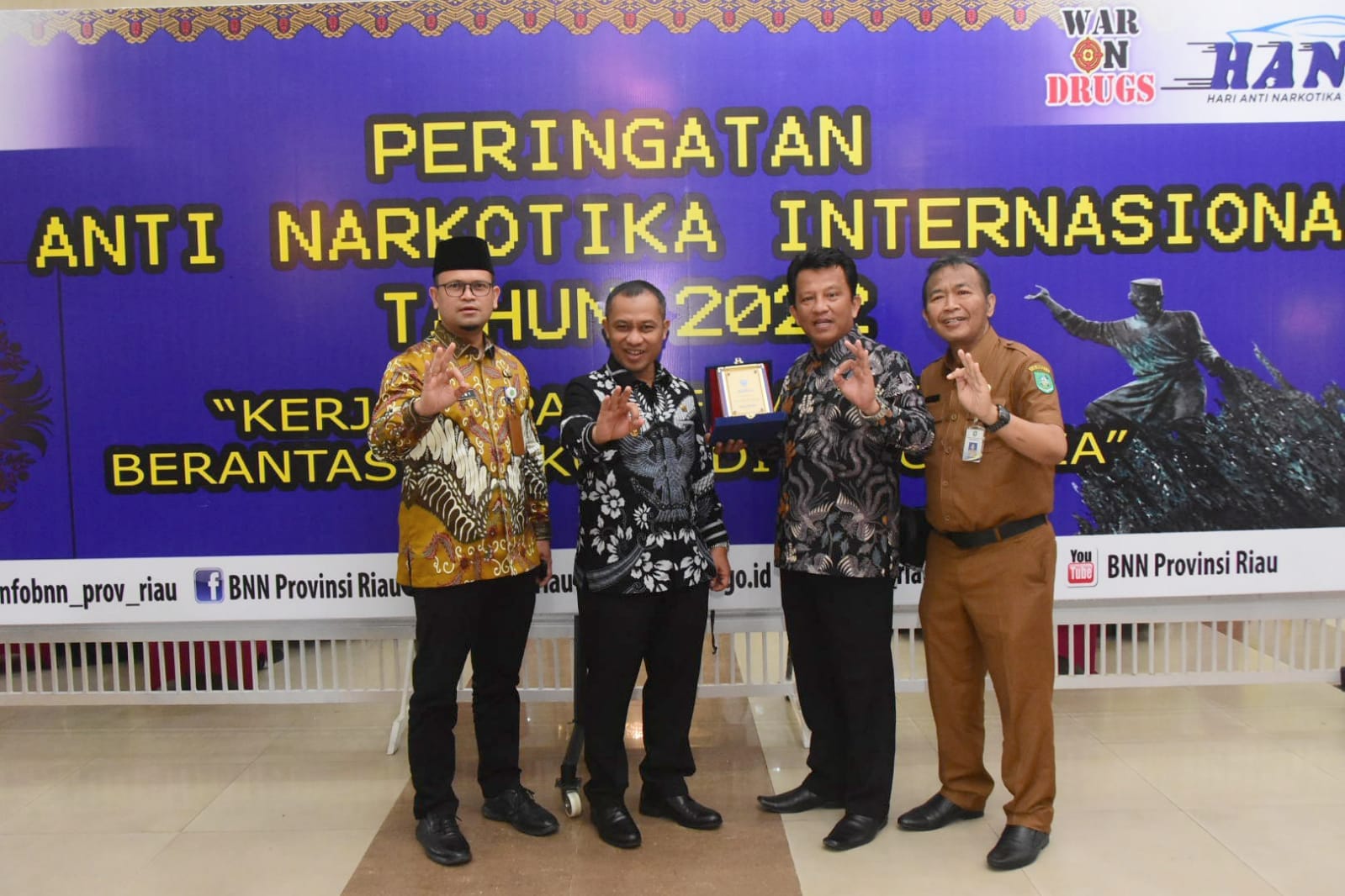 PEKANBARU - Wakil Bupati Bengkalis H Bagus Santoso melaksanakan tugas Bupati Kasmarni menghadiri acara peringatan Hari Anti Narkotika Internasional (HANI), Senin, 27 Juni 2022 di Balai Serindit Aula Gubernuran Pekanbaru.
