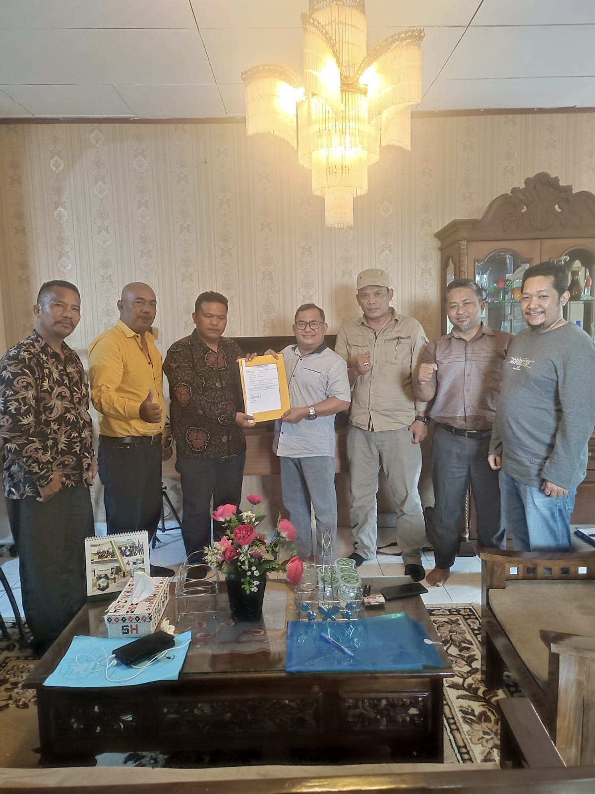 Franseda Simanjuntak, SH Ketua DPC PJS Pelalawan didampingi Sekretarisnya Dian Supianto dan Wakil Sekretaris I Andi Putra Sasoko bersama Bendahara DPC PJS Pelalawan Yose Silaban menyerahkan berkas pengurus dan anggota yang diterima langsung Ketua DPD PJS Provinsi Riau Drs. Wahyudi El Panggabean, MH.