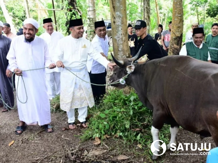 ”Kita contoh betapa Bang Hasan ini peternak sukses, momentum hari raya qurban ini kita tidak hanya lihat sukses usahanya tapi juga ikhlas berbagi terpenting gigih kita jadikan inspirasi sebagai peternak sukses." puji Bagus Santoso di sela penyembalihan kurban.