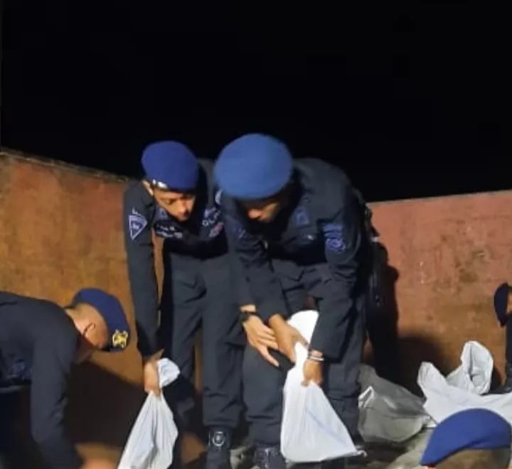 Di sekitar truk tersebut terlihat sejumlah anggota Sat Brimob Polda Kep Babel berseragam khusus dengan senjata lengkap sedang berjaga. Di dalam truk tersebut terlihat masih terdapat sejumlah barang bukti.