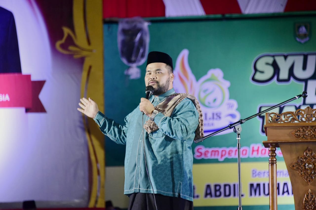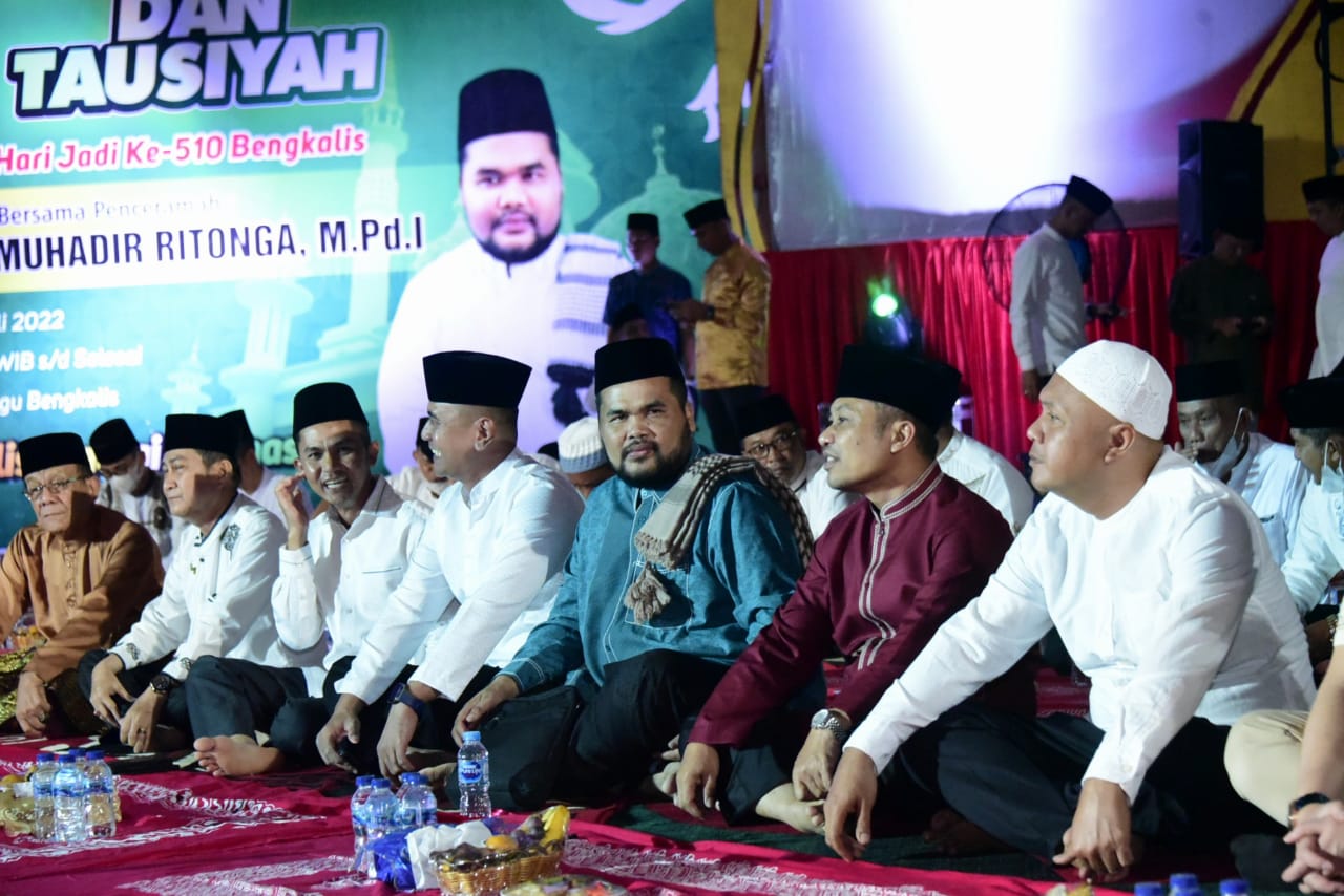 SATUJU.COM BENGKALIS - Syukuran sempena hari jadi ke-510 Bengkalis, Pemerintah Kabupaten (Pemkab) Bengkalis menggelar tabligh akbar Sabtu, 30 Juli 2022 di lapangan tugu Bengkalis. Selain syukuran hari jadi Bengkalis, tabligh akbar yang menghadirkan Ustadz Abdul Muhadir Ritonga dari Medan itu juga dalam rangka peringatan Tahun Baru Islam 1444 Hijriyah.