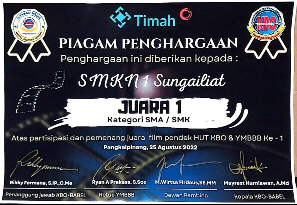 Peserta Lomba Festival Film Pendek HUT KBO BABEL Ke-1 sebagai berikut dengan judul :