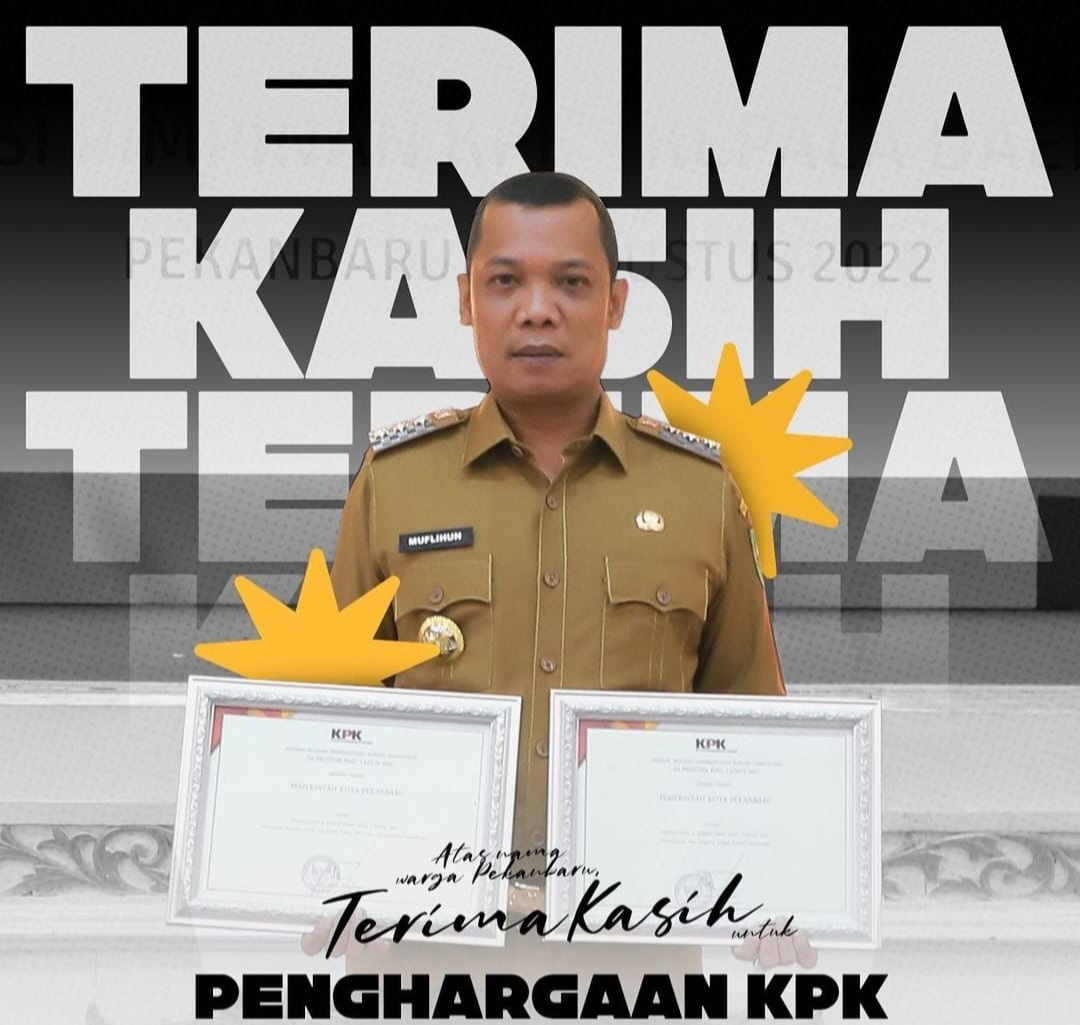 "Kami ucapkan terimakasih sebesar-besarnya kepada pimpinan KPK atas penghargaan ini. Apresiasi yang diberikan ini akan menjadi cambuk untuk kami dalam memberikan yang terbaik untuk membangun Kota Pekanbaru khususnya dan juga Riau pada umumnya," ungkap Muflihun.