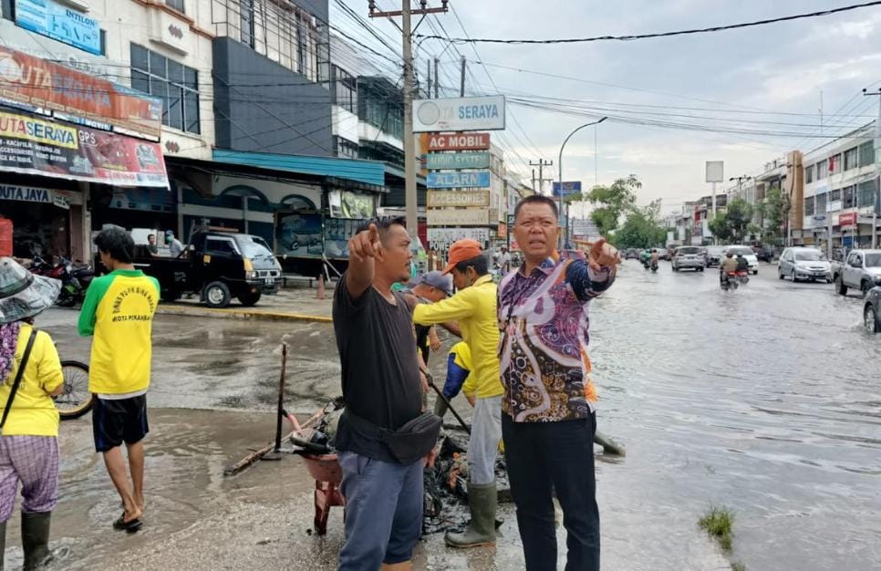 Kadis PUPR Pekanbaru Indra Pomi Turun Langsung Meninjau Pasukan Kuning Membersihkan Drainase di Jalan Riau Kota Pekanbary