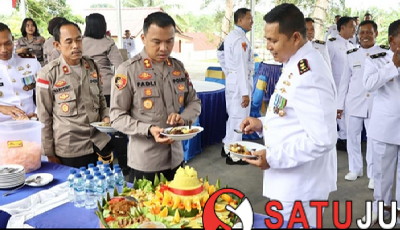 SATUJU.COM, Lingga (Kepri) - Untuk meningkatkan sinergitas dan soliditas antara TNI-Polri, Kapolres Lingga AKBP Fadli Agus,S.I.K., M.H. memberikan kejutan Kepada Danlanal Dabo Singkep Letkol Laut Faruq Dedy Subiantoro, M.Tr,. Opsla. dalam rangka memperingati Hari Ulang Tahun (HUT) TNI-AL Ke 77 Tahun 2022 di Mako Lanal Dabo Singkep Kabupaten Lingga, Senin (12/09/2022).