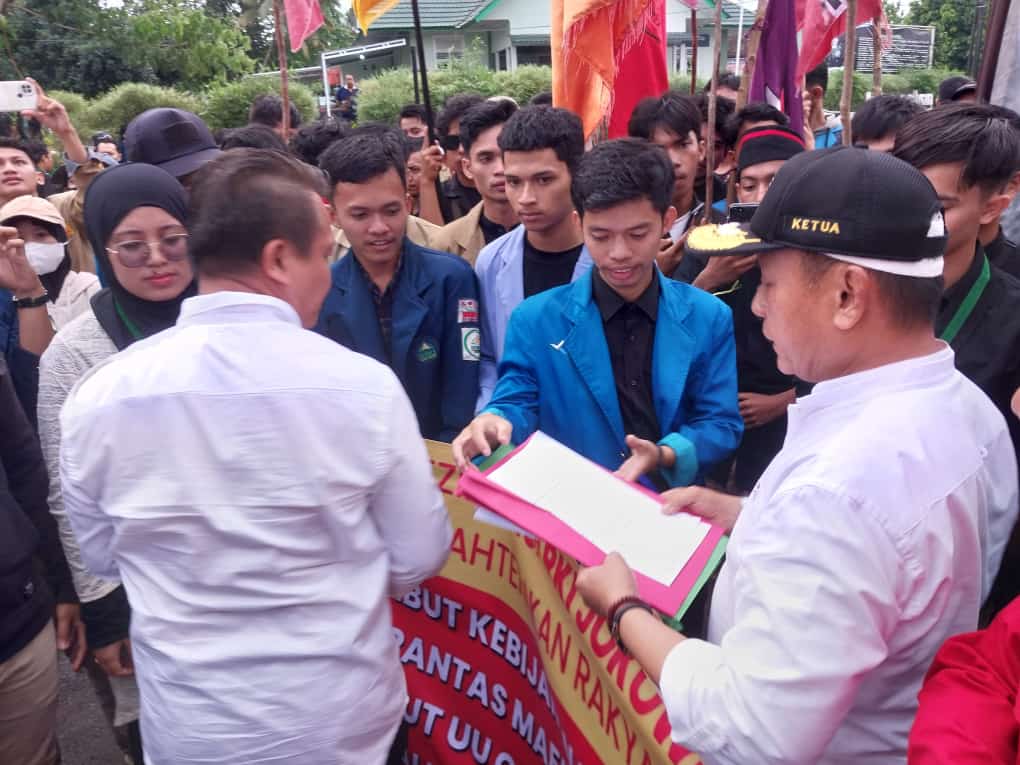 Berikut pernyataan sikap atau tuntutan aksi Gemas Babel, yang pertama Cabut kebijakan kenaikan Harga BBM dan Berantas Mafia Migas, Cabut UU cipta kerja, UU IKN, UU Minerba, batalkan RKUHP, dan RUU Sisdiknas, Tegakkan reformasi agraria sejati.