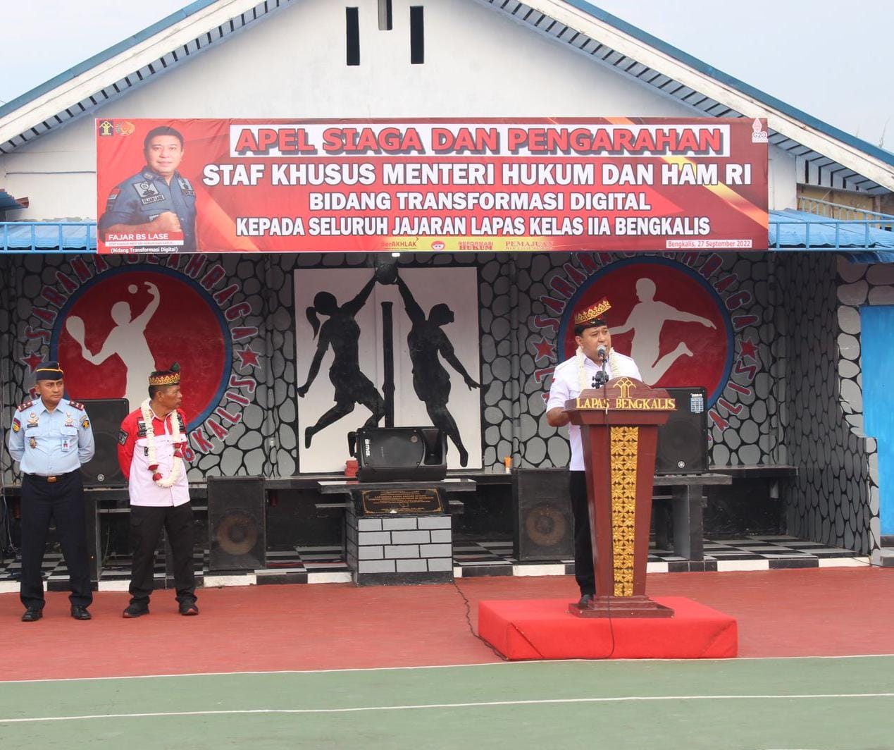 Stafsus Kemenkumham RI Bapak Fajar Lase, dalam kunjungan kerjanya tersebut memberikan pengarahan kepada seluruh jajaran Lapas Kelas IIA Bengkalis.