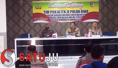 SATUJU.COM BENGKALIS - Karo Rena Polda Riau Kombes Pol Novi Irawan SIK MH yang diwakili oleh Kabag RBP Biro Rena Polda Riau AKBP Rommel Hutagaol SIP MSi dan Tim Pokja Biro Rena Polda Riau laksanakan kegiatan Validasi Data Objek Indeks Tata Kelola ITK-O Polres Bengkalis Tahun 2022 di Aula Polres Bengkalis Provinsi Riau. Selasa (04/10/2022).