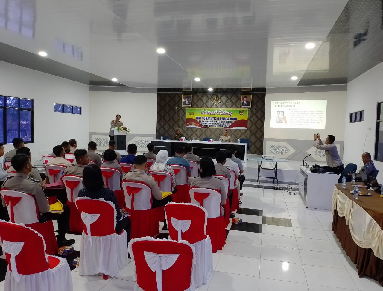Rapat Validasi Data Objektif Indeks Tata Kelola Online ITK-O Polres Bengkalis Tahun 2022 penyampaian singkat itu indeks tata kelola dan kemampuan untuk mengukur kinerja Polri, Terutama di wilayah polres Bengkalis yang diwakili oleh Kabagren polres Bengkalis Kompol David Harisman, ST.