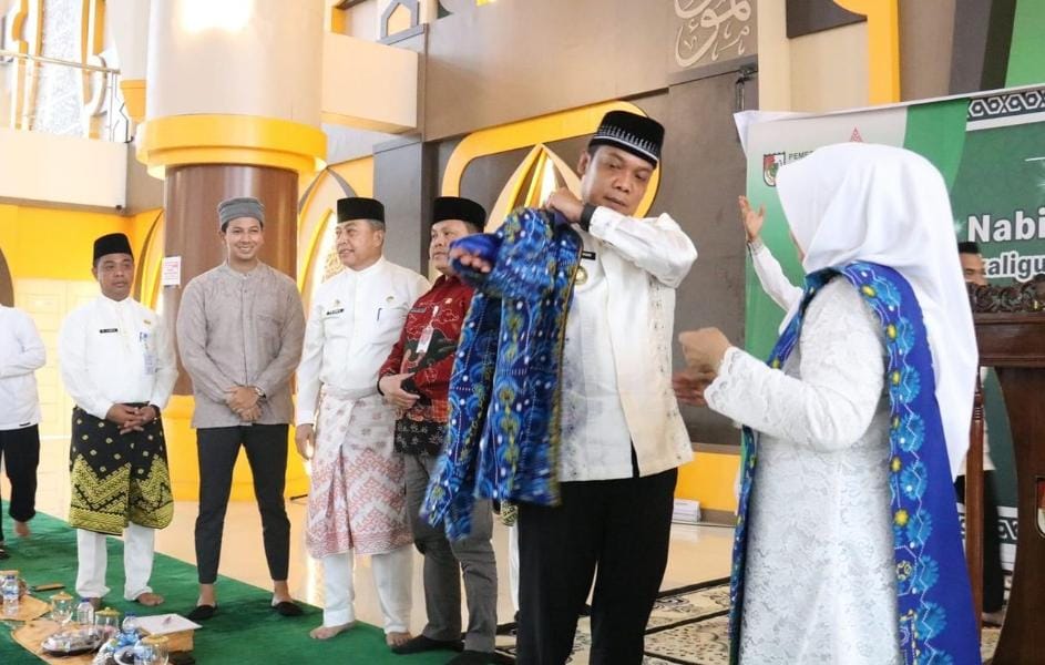 SATUJU.COM PEKANBARU - Penjabat (Pj) Walikota Pekanbaru Muflihun dikukuhkan sebagai Bapak Badan Kontak Majelis Taklim (BKMT) Kota Pekanbaru. Pengukuhan ini digelar Jumat (14/10) sekaligus bersempena acara Maulid Nabi Muhammad SAW di Masjid Alfirdaus.