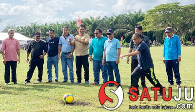 PINGGIR, Satuju.com - Kepala Desa Tengganau Kecamatan Pinggir Rumbin Sitio secara resmi hari ini membuka tournamen sepak bola Tengganau Cup 2 yang digelar dilapangan bola kaki KM 5 PT ADEI Kebun Selatan, Sabtu(15/10/2022).