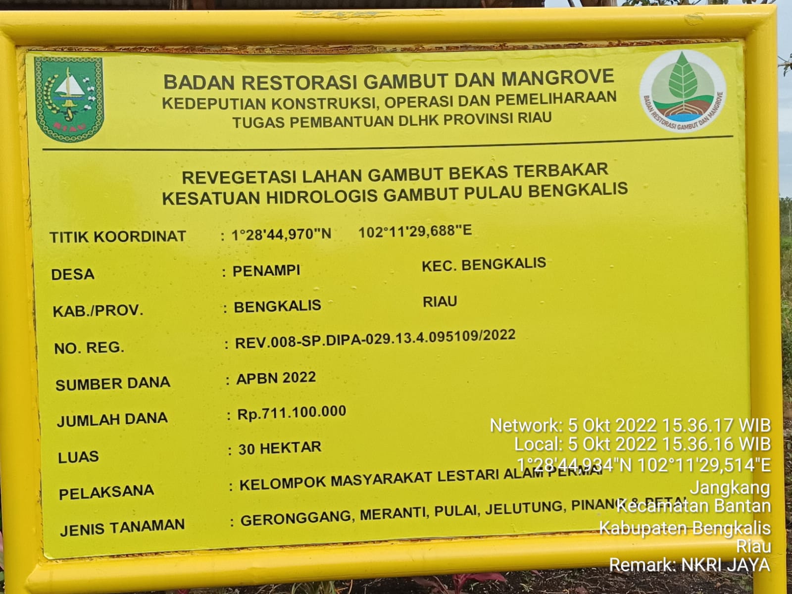 SATUJU.COM BENGKALIS - Pelaksanan kegiatan Dinas lingkungan Hidup dan Kehutanan Provinsi Riau dan Badan Restorasi Gambut dan Mangove RI, di Desa Penampi dan Desa Tameran Kecamatan Bengkalis Provinsi Riau yang menelan anggaran APBN tahun 2022 senilai Rp 1.185.150.000 perlu menjadi perhatian Badan Pemeriksan Keuangan (BPK) RI dan Aparat Hukum yang berwenang.