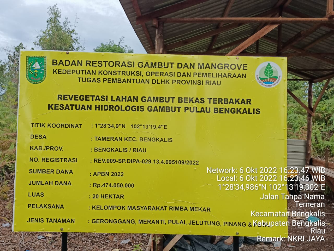 Pasalnya kedua kegiatan Revitigasi Lahan Gambut Bekas Terbakar Kesatuan Hidrologis Gambut Pulau Bengkalis program penanaman pohon Gerunggang, Meranti, Jelutung, pulai, Pinang dan Petai yang dilaksanakan oleh kelompok masyarakat Mekar Rimba Desa Tameran seluas 20 Hektar dan Kelompok Masyarakat Lestari Alam Permai Desa Penampi seluas 30 Hektar, terindikasi sarat dengan Penyimpangan.