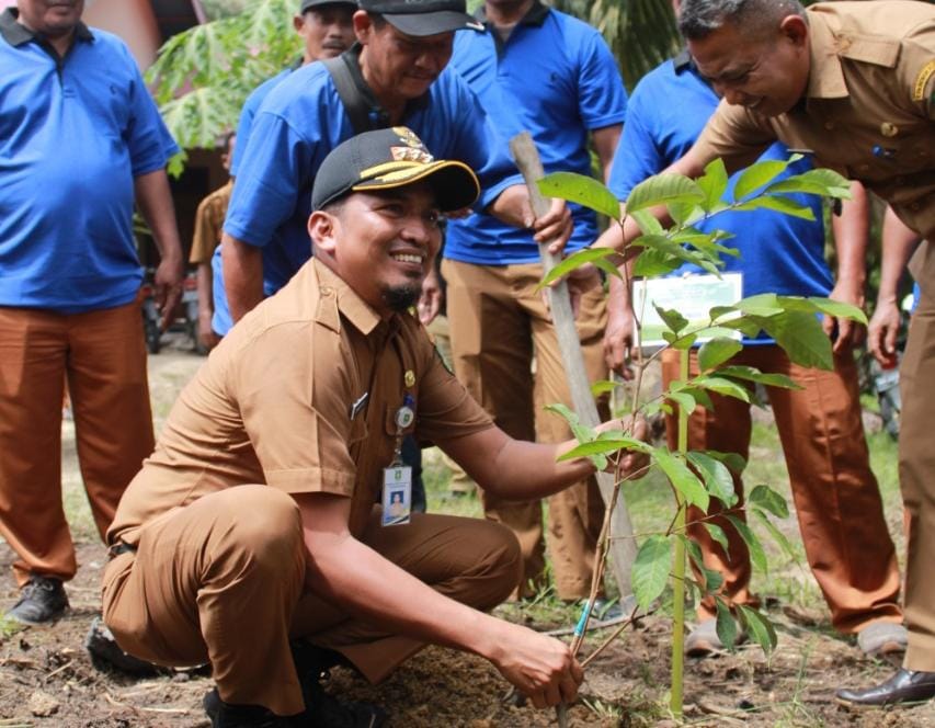 Bantu Pertumbuhan Ekonomi, Camat Pinggir, bersama Kades Buluh Apo Tanam 300 Bibit Rambutan