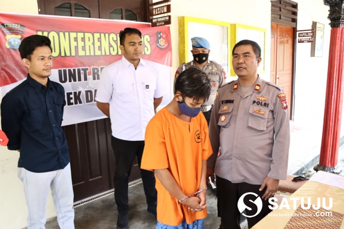 Unit Reskrim Polsek Dabo Singkep berhasil mengamankan pelaku berinisial TR (19 tahun) sekira pukul 04.00 wib bertempat di salah satu hotel di Dabo Singkep, Kabupaten Lingga.