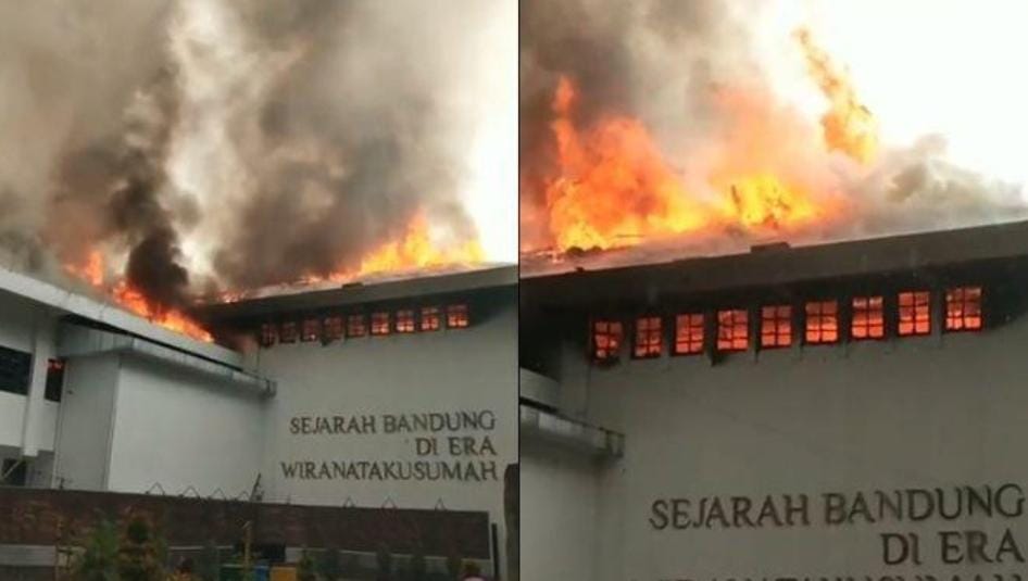 Balai Kota Bandung Terbakar Hebat, Asap Putih Membumbung Tinggi