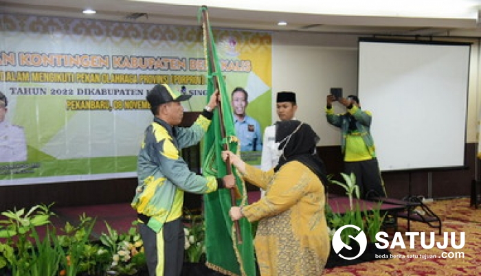 PEKANBARU, Satuju.com - Bupati Bengkalis Kasmarni mengukuhkan sekaligus melepas kontingan Kabupaten Bengkalis berlaga di Pekan Olahraga Provinsi (Porprov) ke-X Riau Selasa malam, 8 November 2022 di Hotel Grand Central Pekanbaru.
