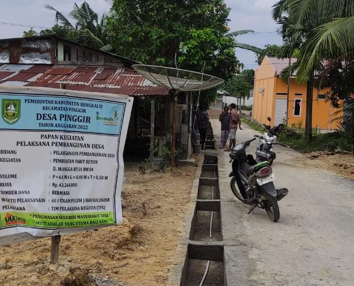 Hal itu tampak di beberapa titik kegiatan peningkatan fisik yang direalisasikan oleh Pemerintah Desa Pinggir melalu Dana Bermasa Seperti pembuatan Draenase parit beton, Box Cover, Semenisasi taepamyai tampak telah dilaksanan, Plt Kepala Desa Pinggir, Khairul Zaman, melalui Sekretaris Desa Pinggir, Rimbun, menyampaikan kepada awak media Satuju.com tentang Kegiatan program Bermasa untuk kegiatan fisik telah dilakukan pengerjaan sejak beberapa waktu lalu.