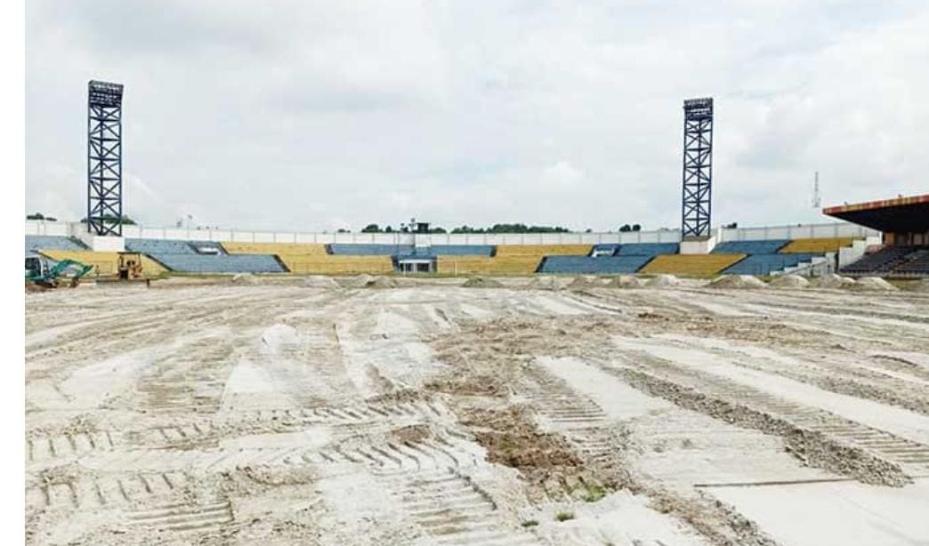 SATUJU.COM PEKANBARU - Stadion Kaharuddin Nasution Rumbai direhabilitasi dengan membongkar total rumput lapangan. Ditargetkan, pada pertengahan Desember mendatang, perbaikan Stadion Kaharuddin Nasution Rumbai ini tuntas sehingga bisa difungsikan kembali.