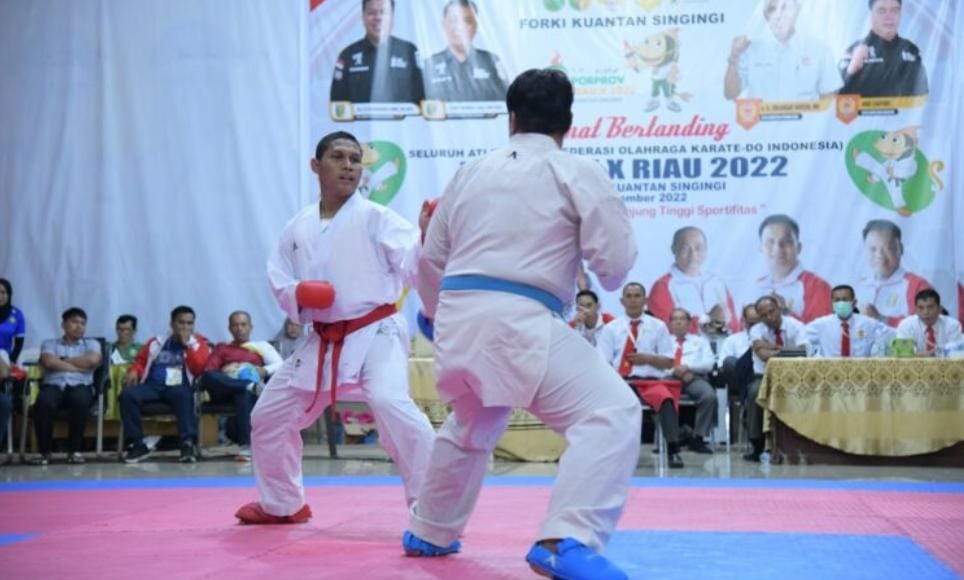 SATUJU.COM KUANSING - Hari kedua Pertandingan cabang olahraga (Cabor) karate Pekan Olahraga Provinsi (Porprov) Riau X Kuansing yang berlangsung di Pendopo Kediaman Bupati Kuansing telah menyelesaikan beberapa nomor komite, Minggu (13/11/22).