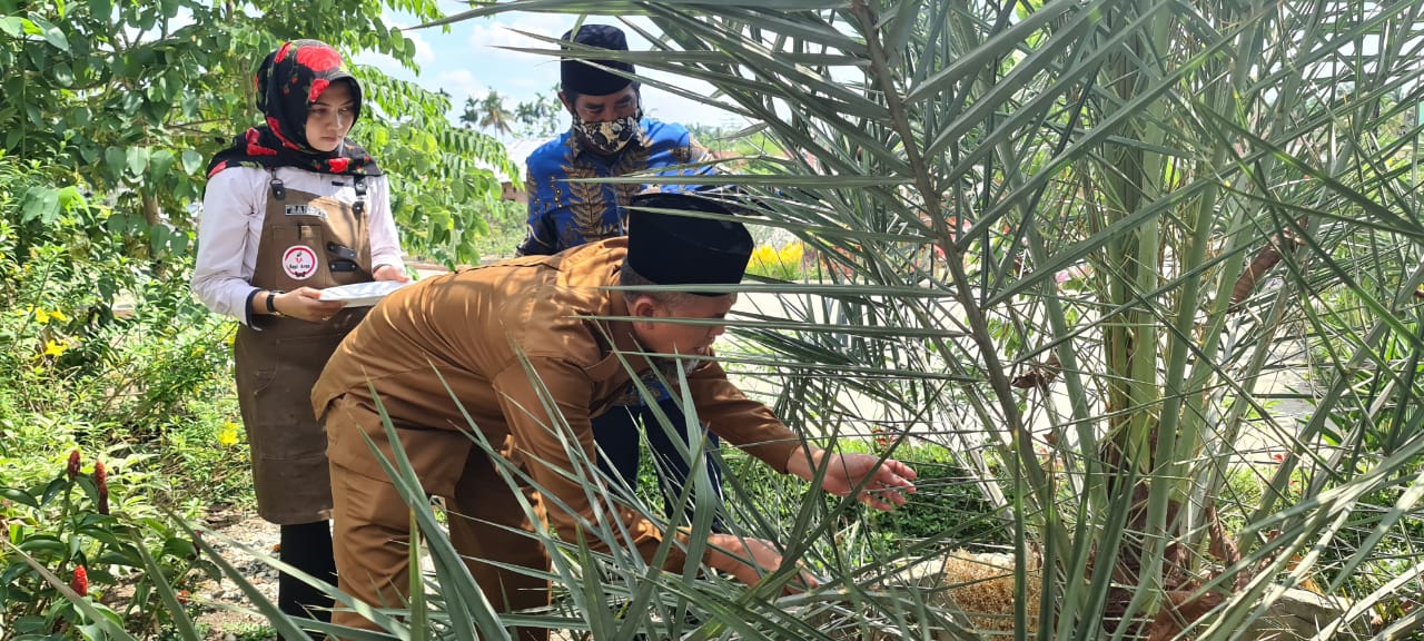 Pekanbaru - Senin, (8/3/21) Walikota Dumai H. Paisal, SKM, MARSK bersama Ketua Umum Santri Tani Nahdatul Ulama (SANTANU) yang juga owner RA Kopi Aren Panen Bunga Jantan Kurma Ajwa di Taman Agrowisata RA Kopi Aren di Jalan Siak II Palas Kecamatan Rumbai, Pekanbaru.